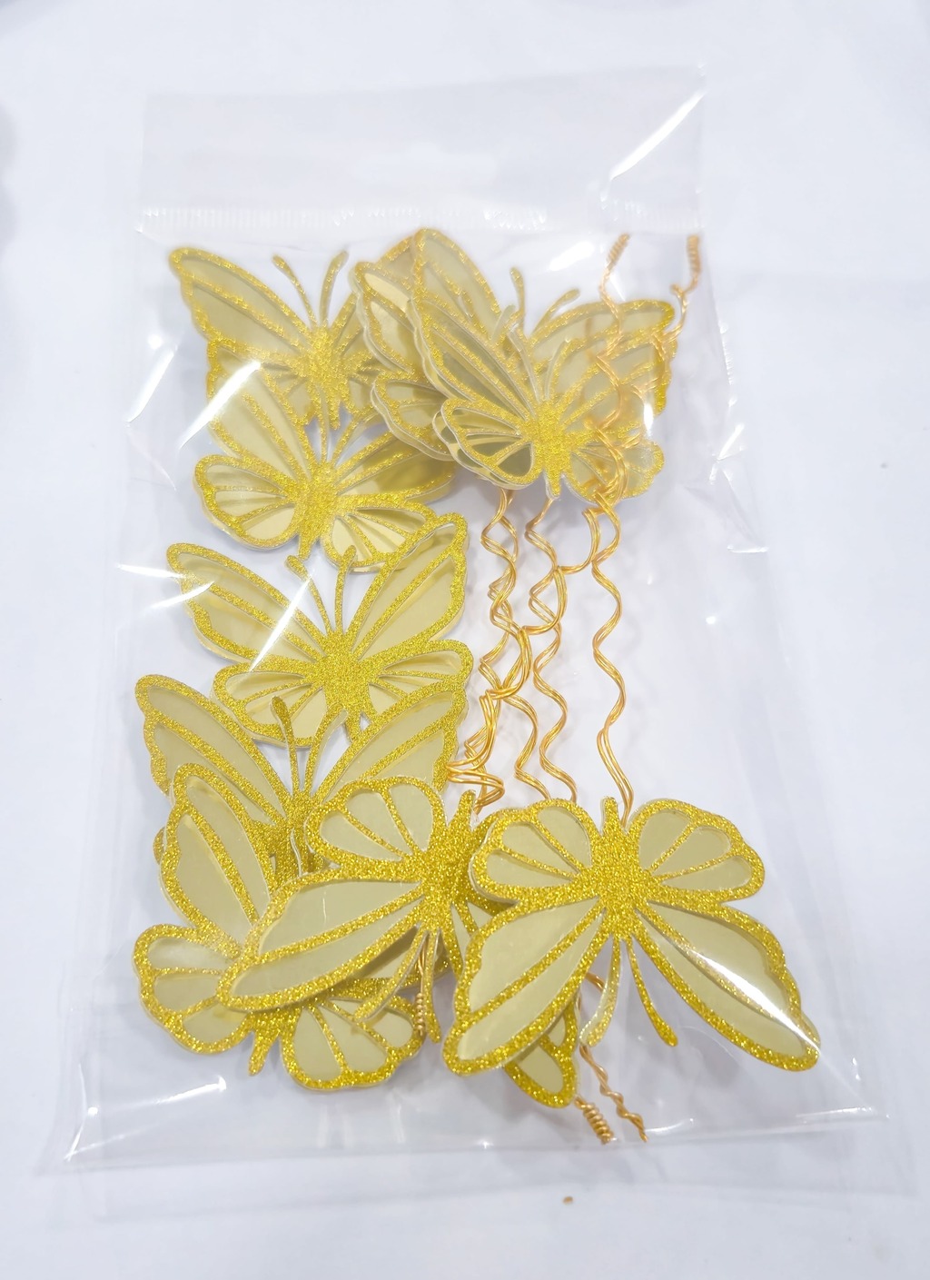 Adicione um toque especial à sua decoração com nossas borboletas decorativas em papel. Com acabamento dourado e glitter de alta qualidade, elas são perfeitas para decorar bolos, festas, lembrancinhas, álbuns, painéis e muito mais!