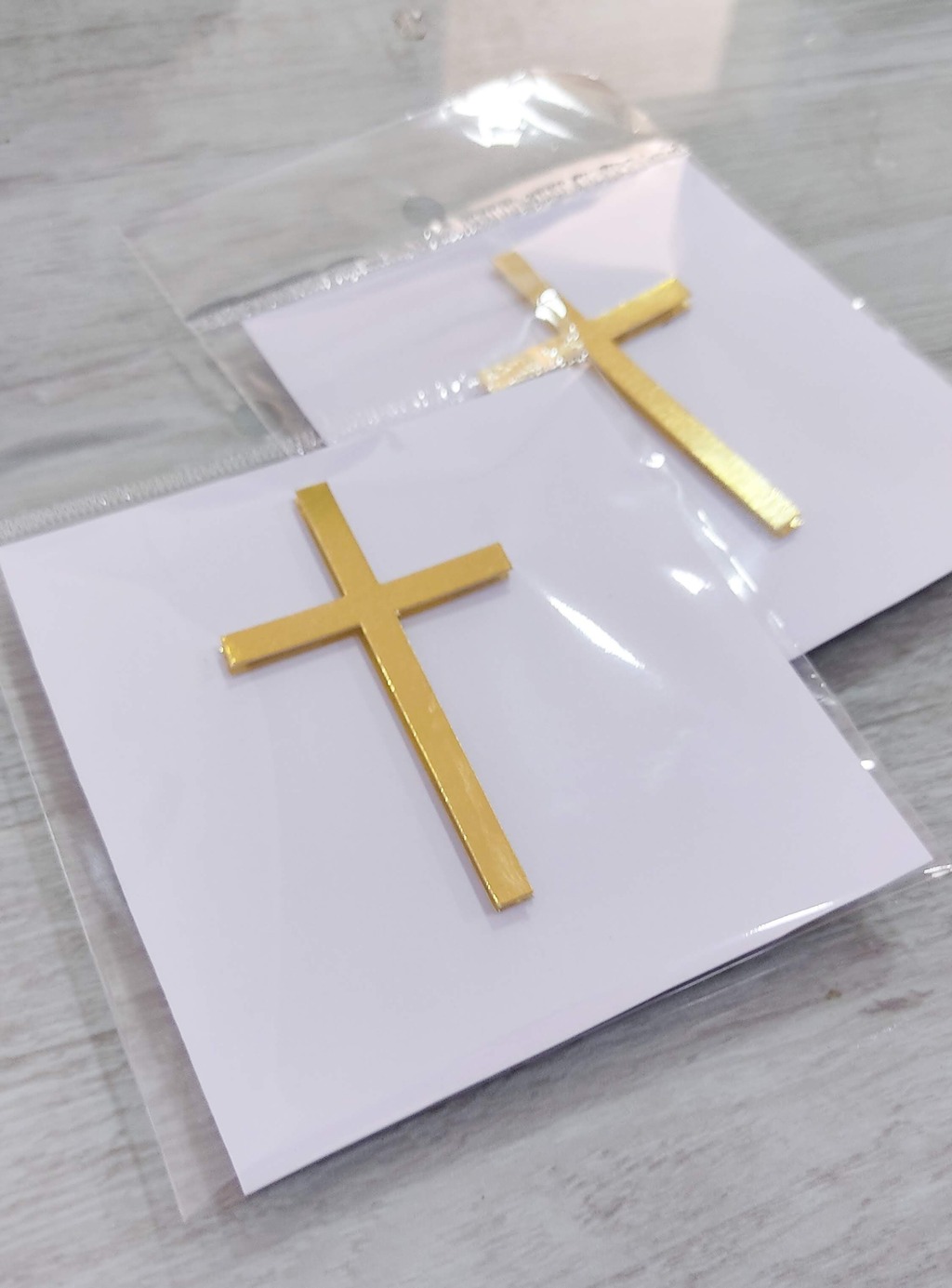 Embalagem: Cruz aplicada sobre base branca e embalada individualmente