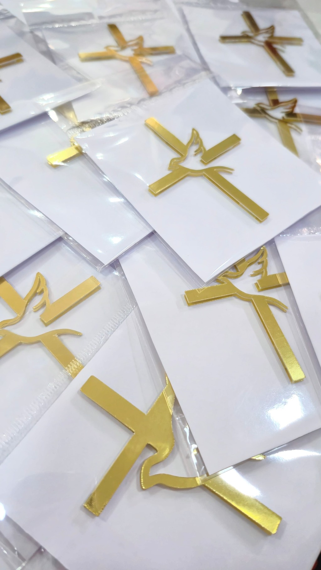 Ideal para decorar bolos, convites, lembrancinhas religiosas, decoração de eventos e projetos artesanais, esta cruz em papel oferece um visual elegante com acabamento metalizado em dourado. Um item que une fé e sofisticação em uma peça durável e prática.